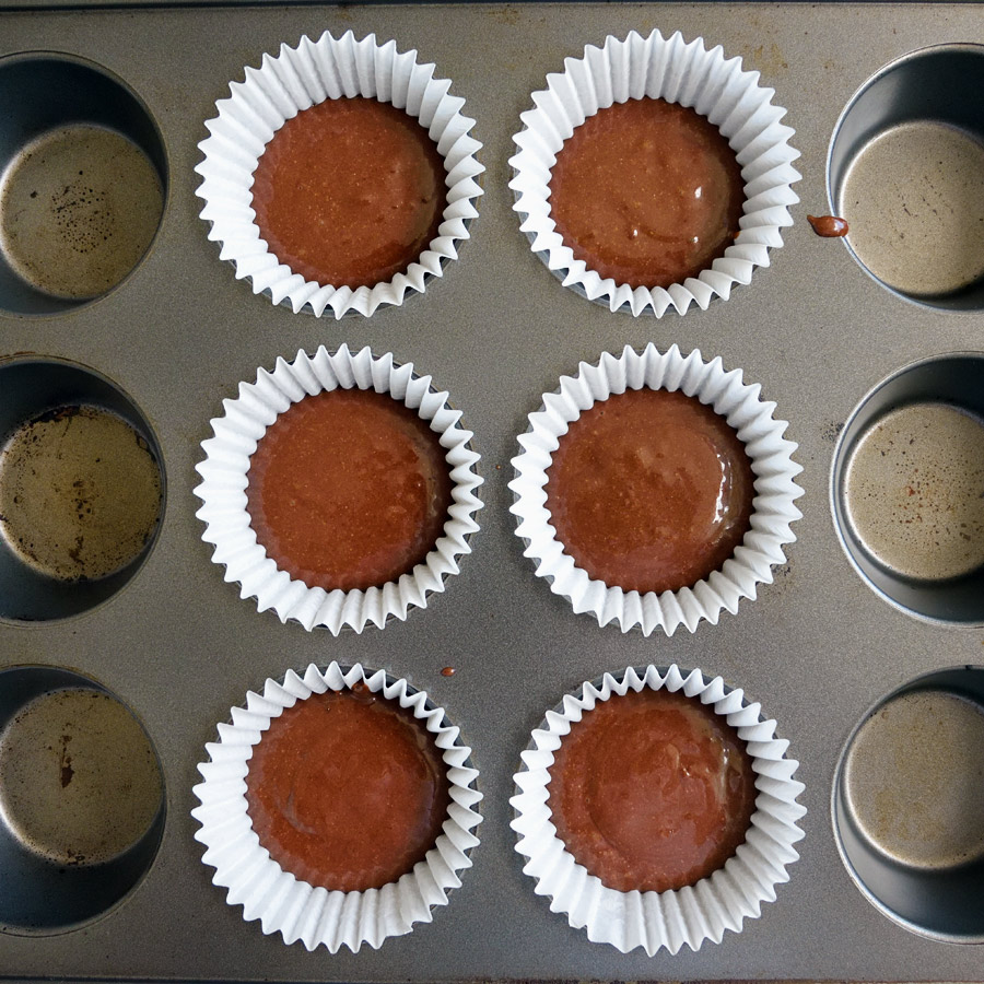 - Preheat oven to 350˚F and line muffin pan with paper or foil liners.
